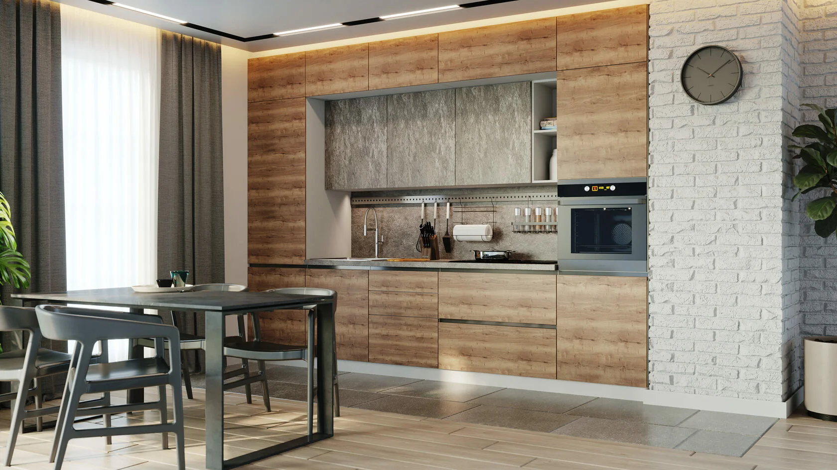 Модные текстуры дерева и бетона не просто удачно сочетаются между собой. Они призваны задать тренд на модель ДЖАРА.