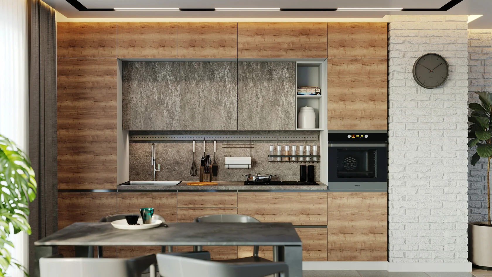 ·     Лаконичный дизайн не просто встраивается в Ваш интерьер. Он верен канонам минимализма, демонстрируя пример встроенной кухни.