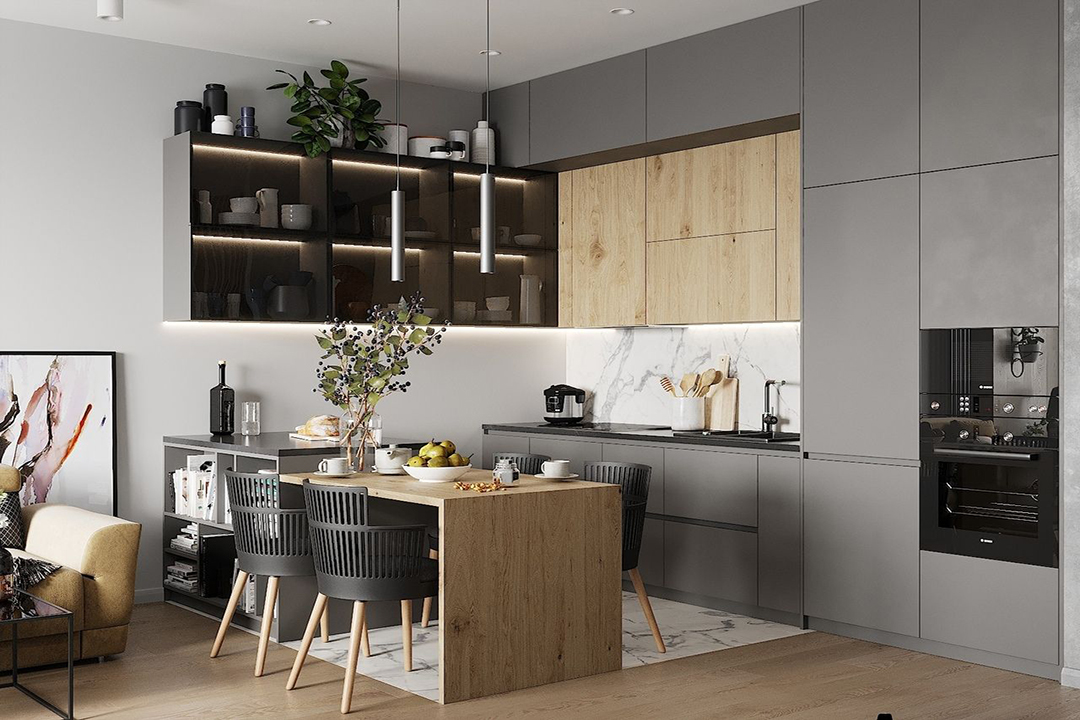 – ровные плоскости кухонных фасадов без лишних деталей.